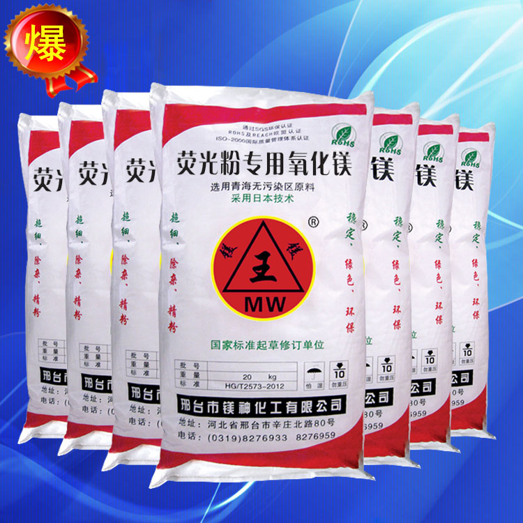 熒光粉級專用氧化鎂產品無污染,含量高,純度高,可達99.5%以上,重金屬含量低,達到歐盟標準,遠優于國家標準;經過超細粉粹,超聲波分級處理,細度好,雜質少,白度好,細度好,粒徑分布均勻,晶型結構合理,質量穩定性高;可以有效解決產品亮度衰退速度快等質量問題。
